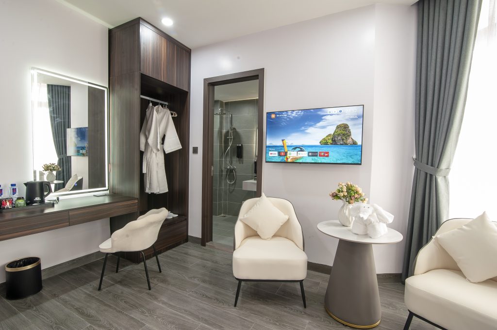 Đến với Riverside Hotel, quý khách sẽ được trải nghiệm không gian ấm cúng, tiện nghi, với đội ngũ nhân viên chuyên nghiệp và thân thiện luôn sẵn sàng phục vụ. Khách sạn cung cấp các phòng nghỉ được thiết kế hiện đại, thoải mái và trang bị đầy đủ các tiện ích như TV, Wi-Fi miễn phí, minibar, và máy điều hòa.